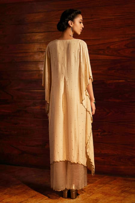 Buy_Mimamsaa_Ivory Silk, Organza Embroidery V-neck Anne Sequin Kaftan And Pant Set _at_Aza_Fashions