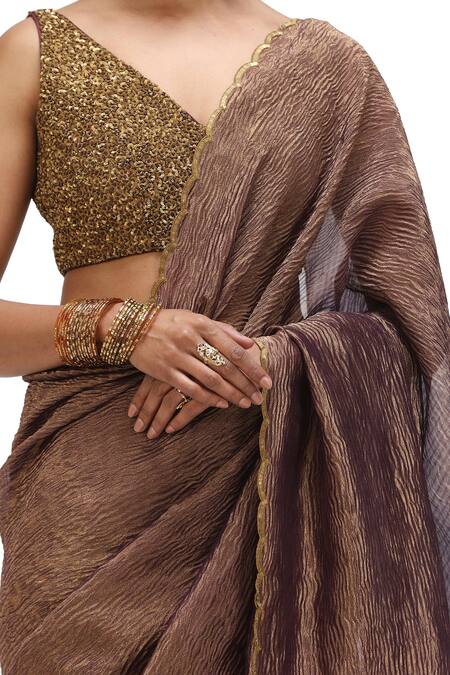 Buy_Mimamsaa_Purple Crushed Tissue Embroidered Sequin Bushra Scallop Hem Saree _at_Aza_Fashions