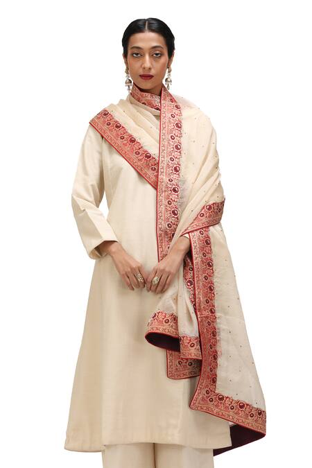 Buy_Mimamsaa_Ivory Organza Silk Woven Floral Applique Deepa Border Embellished Dupatta _Online_at_Aza_Fashions