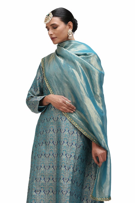 Buy_Mimamsaa_Blue Tissue Silk Embroidered Sequin Gazal Scallop Hem Dupatta _at_Aza_Fashions