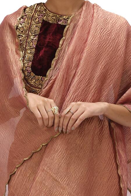 Brown Crushed Tissue Embroidered Sequin Hanita Scallop Hem Saree