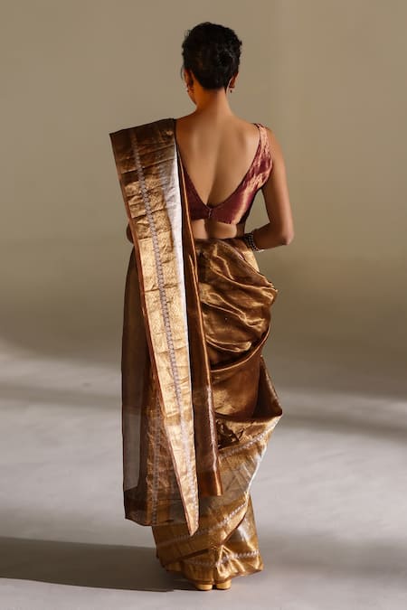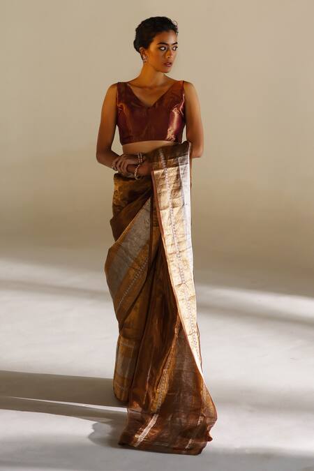 Buy_Mimamsaa_Purple Tissue Silk V Neck Karolin Blouse_at_Aza_Fashions