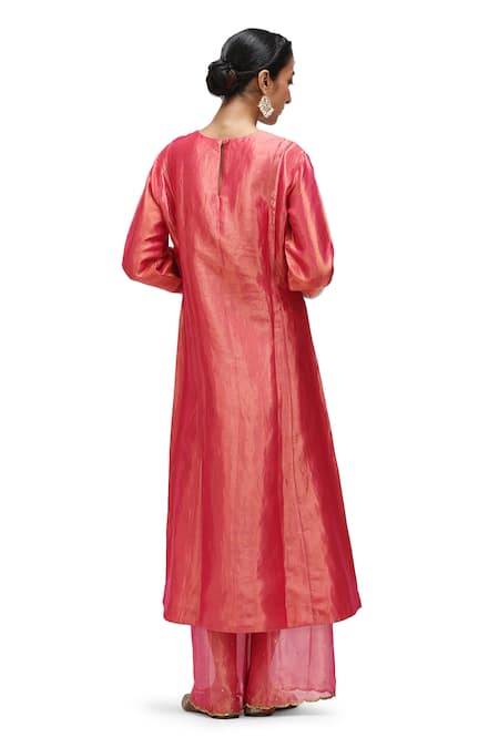 Buy_Mimamsaa_Fuchsia Tissue, Silk Pearls, Kaur Placement Embroidered Anarkali With Pant _Online_at_Aza_Fashions