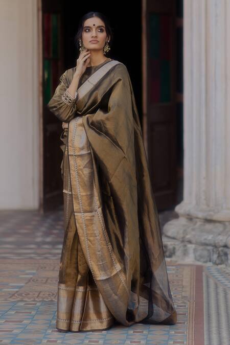 Buy_Mimamsaa_Grey Tissue Silk Paro Woven Saree_Online_at_Aza_Fashions
