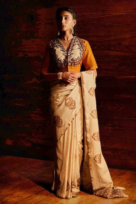 Yellow Silk Munga Woven And Embroidered Sequin & Thread Portia Floral Blouse