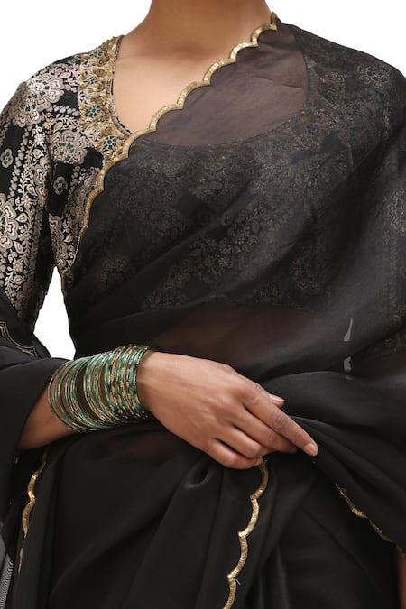 Buy_Mimamsaa_Black Organza Silk Embroidered Sequin Sati Scallop Hem Saree _Online_at_Aza_Fashions