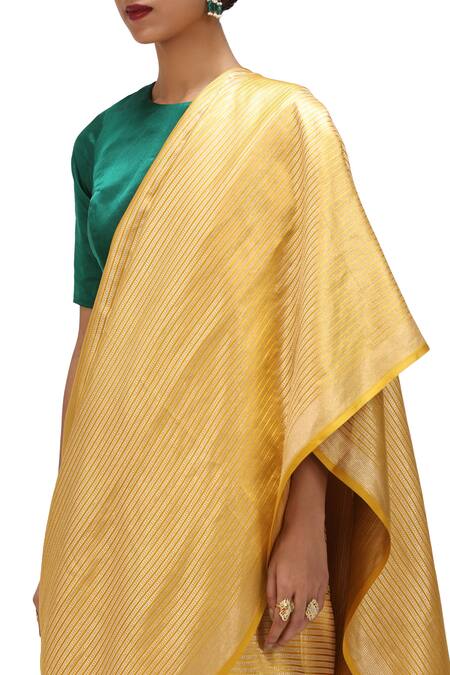 Yellow Satin, Silk Shaima Danda Weave Pattern Saree