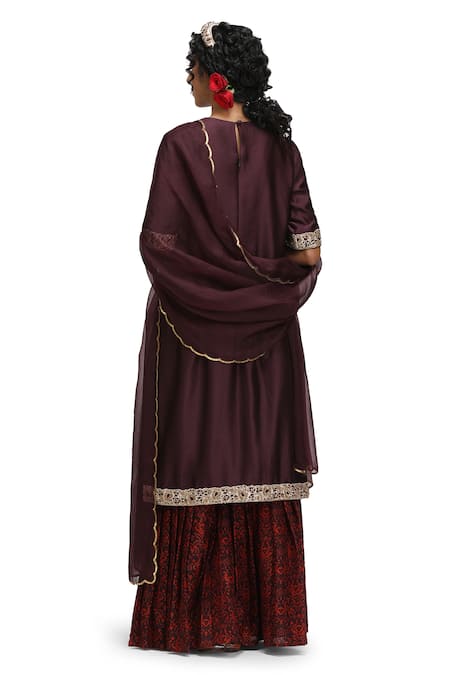 Buy_Mimamsaa_Maroon Muslin, Silk, Organza Embroidery Yashasvini Munga Kurta Set With Dupatta _Online_at_Aza_Fashions