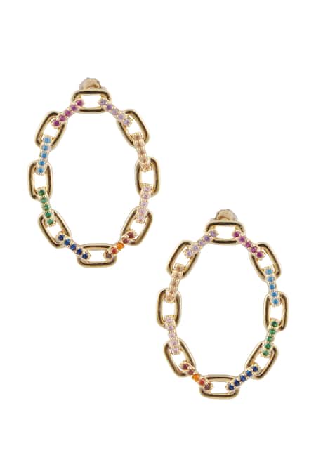 Multi color earrings featuring a chain cut work pattern and stone embellishments