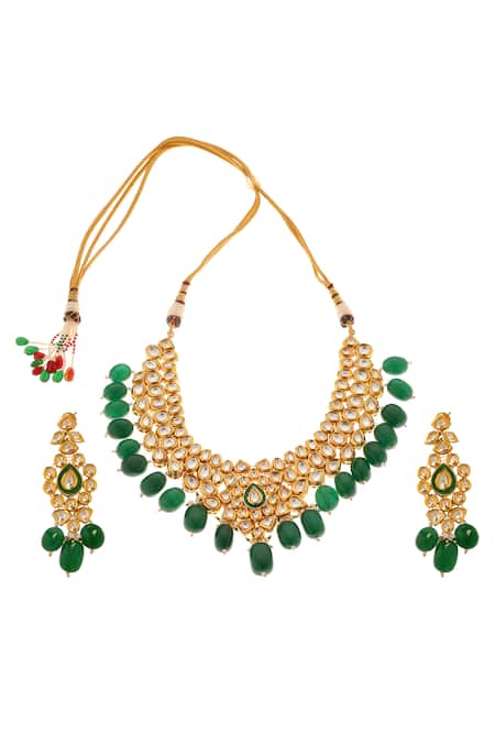 Buy_Minaki_Green Beads, Metallic Thread Embellished Necklace Set _Online_at_Aza_Fashions