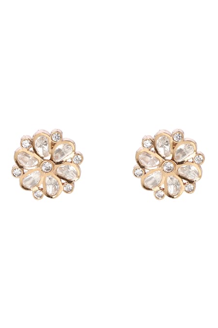 Buy_Minaki_Gold Plated Zari, Crystals Floral Carved Studs _at_Aza_Fashions