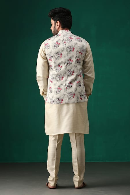 Beige Stretch Poly Silk Floral Print Bundi