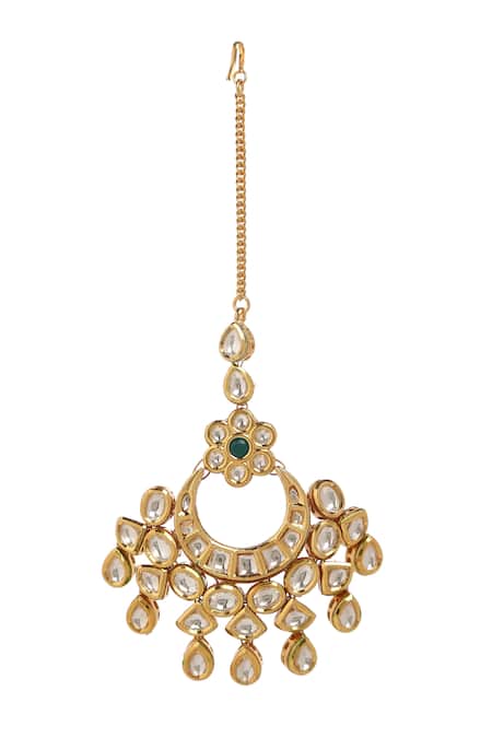 White maangtikka featuring kundan and stone embellishments with stone drops