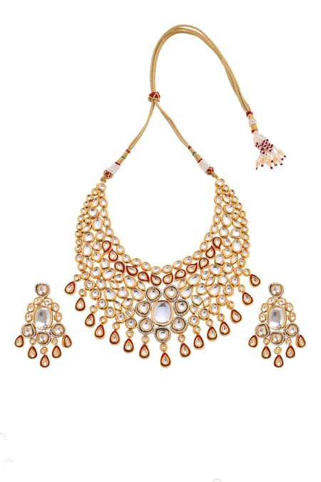 Buy_Minaki_Red Stones, Diamonds Geometric Kundan Necklace Set _Online_at_Aza_Fashions