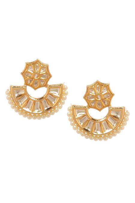 Buy_Minaki_Green Gota Patti Kundan And Pearl Embellished Chandbalis_Online_at_Aza_Fashions