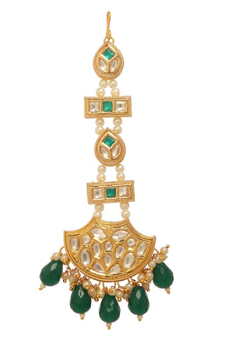 Buy_Minaki_Green Kundan Bead Drop Maangtikka _at_Aza_Fashions