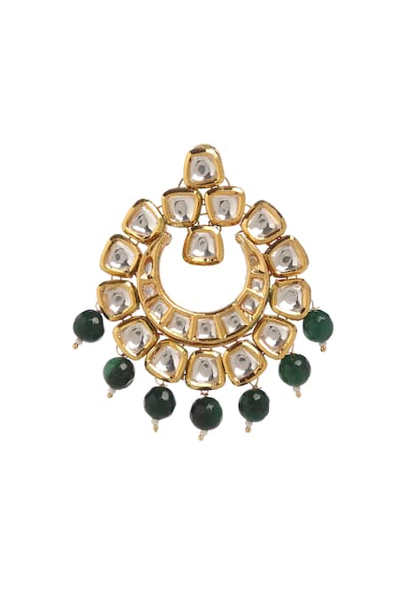 Minaki_Green Stones Kundan Embellished Chandbalis _Online_at_Aza_Fashions