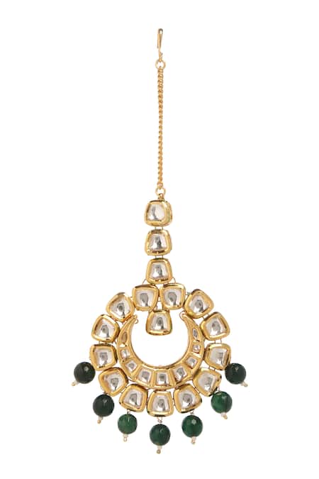 Buy_Minaki_Green Kundan Embellished Maangtika _at_Aza_Fashions