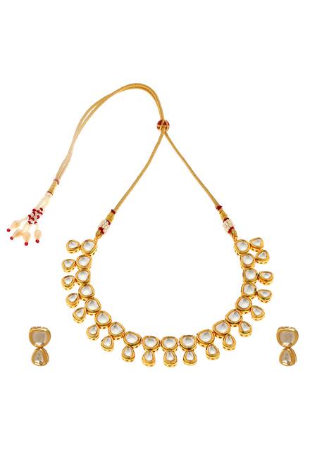 Minaki_Gold Plated Stones Kundan Embellished Necklace Set_Online_at_Aza_Fashions