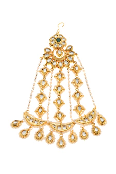Gold passa featuring kundan and pearl embellishments with half moon patterns