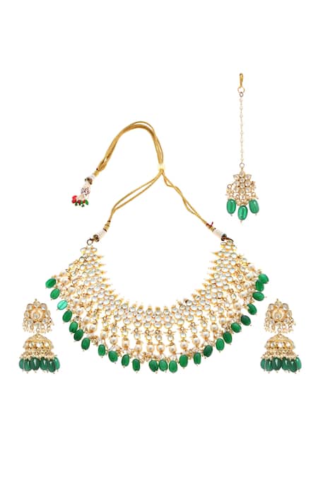Buy_Minaki_Green Pearls, Beads Kundan Necklace Set _Online_at_Aza_Fashions