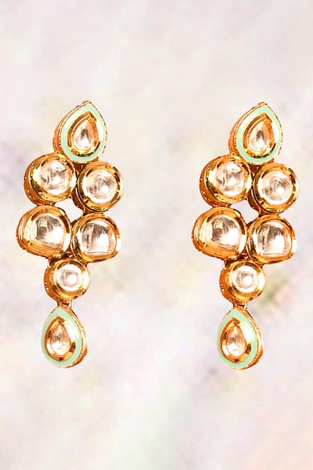 Intricate mint meenakari work, Layered design with multiple tiers, Kundan setting with a mix of shapes