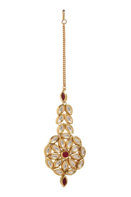 Buy_Minaki_Red Leaf Embellished Maangtika_at_Aza_Fashions