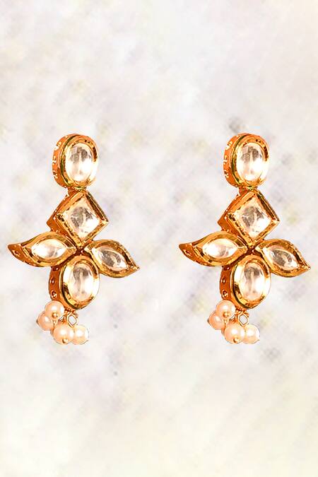 Multi pearl strand choker featuring a kundan brooch. Accompanied by matching earrings with pearl embellishments.