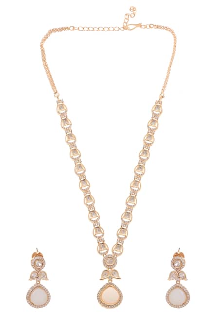 Buy_Minaki_White Stones, Piping Nazakat Polki Embellished Necklace Set _Online_at_Aza_Fashions