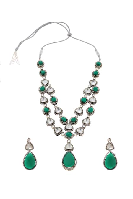 Buy_Minaki_Green Crystals, Stones Two Layered Necklace Set _at_Aza_Fashions