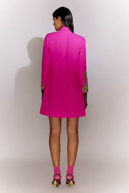 Pink jacket dress made from double georgette featuring aari applique embroidery
