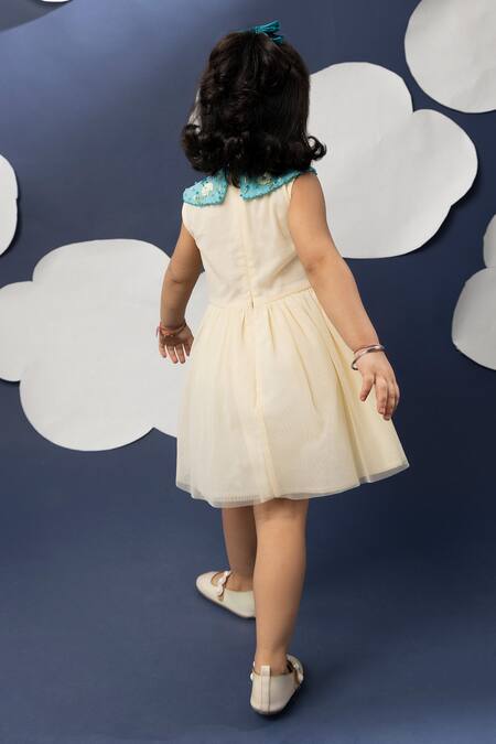 Cream Cotton, Tulle Sequins, Beads Shizuka Embellished Chelsea Collar Dress