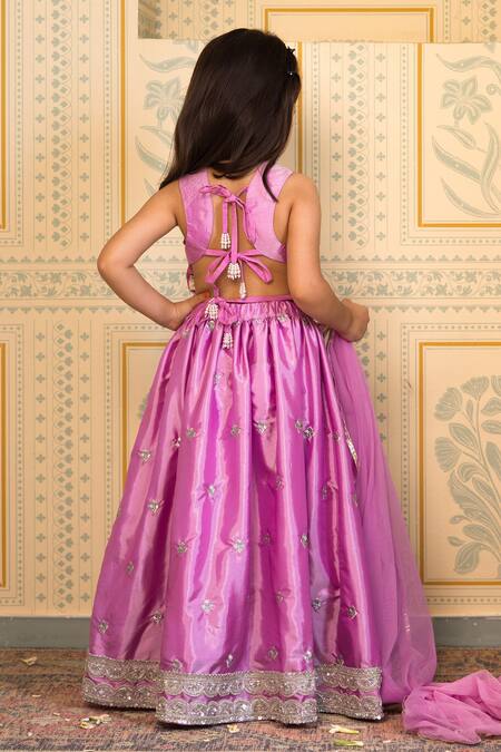 Purple Silk, Cotton Embroidery, Lace Zari Butta Lehenga Set
