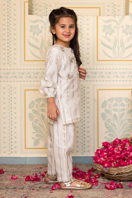 Floral zari detailing on kurta, Stripe pattern fabric, Puff sleeves for comfort