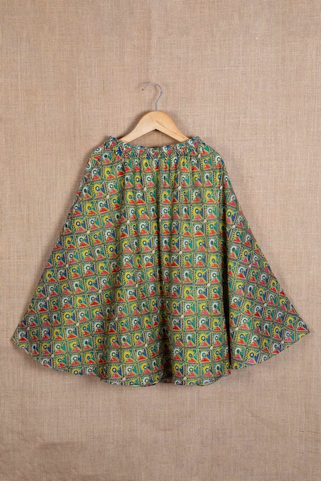 Green Cotton, Silk, Taffeta Embroidery Geometric Print Lehenga Set