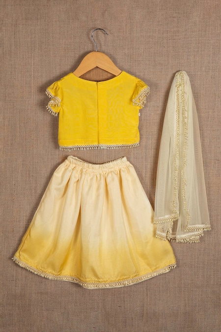 Yellow Silk, Cotton Beads Ombre Lehenga Set
