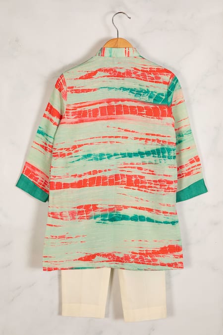 Green kurta featuring a tie dye print with front buttons. Paired with a matching pyjama for a complete look.