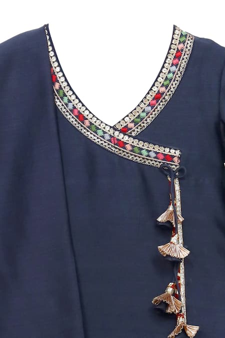 Beaded embellishments along the neckline, Tassel detailing on the kurta, Side slits for ease of movement