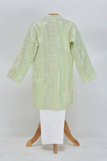 Buy_Minime Organics_Green Georgette, Cotton Sequins, Embroidery Patterned Kurta Set_at_Aza_Fashions