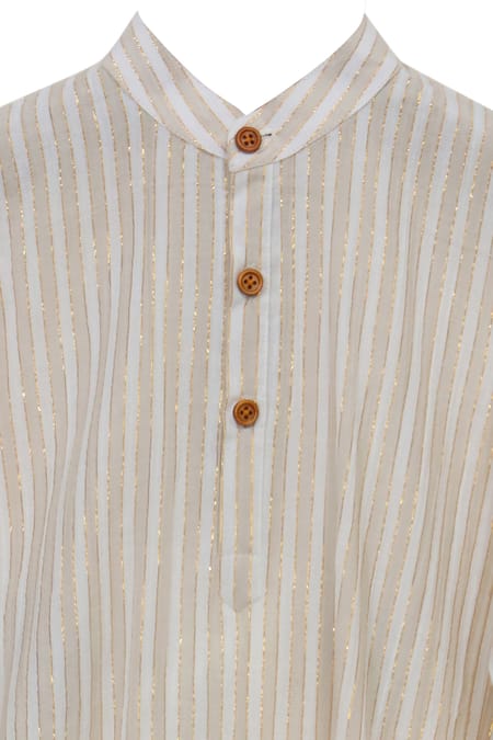 Off White Cotton, Lurex Striped Pattern Kurta And Pyjama Set