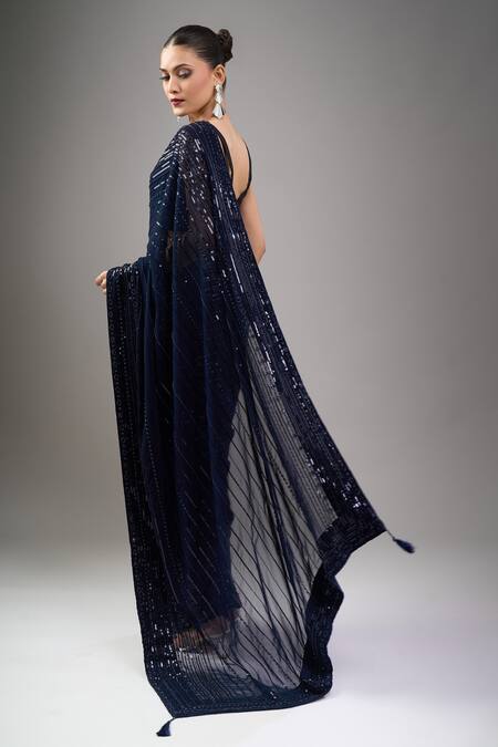 Blue Georgette Sequins Designer Pure Saree