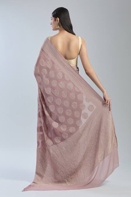 Purple saree featuring hand woven flower butta detailing. Comes with an unstitched blouse piece.