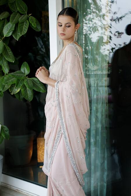 Pink Georgette Sequins Gulabo Embroidered Saree With Running Blouse