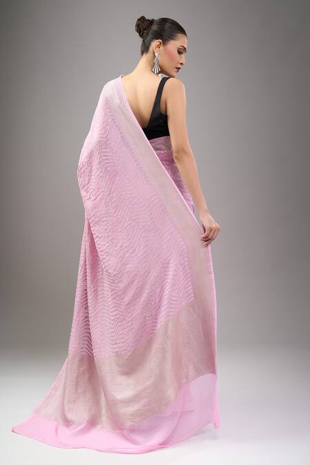 Lilac saree made from pure georgette featuring intricate patterns. Paired with a matching blouse piece.