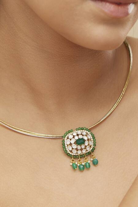 Green Gunjan Moissanite Polki Studded Hasli Necklace
