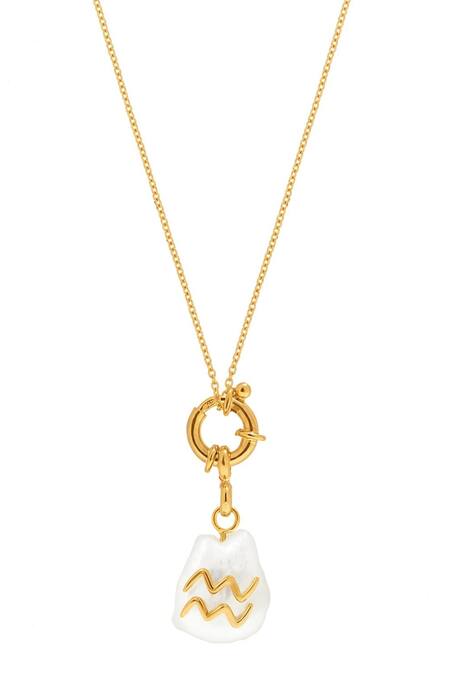 Gold plated necklace featuring a convertible Aquarius pendant adorned with keishi pearl