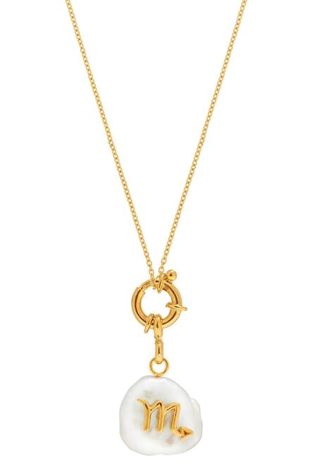 Gold plated necklace featuring a convertible scorpio pendant in keishi pearl