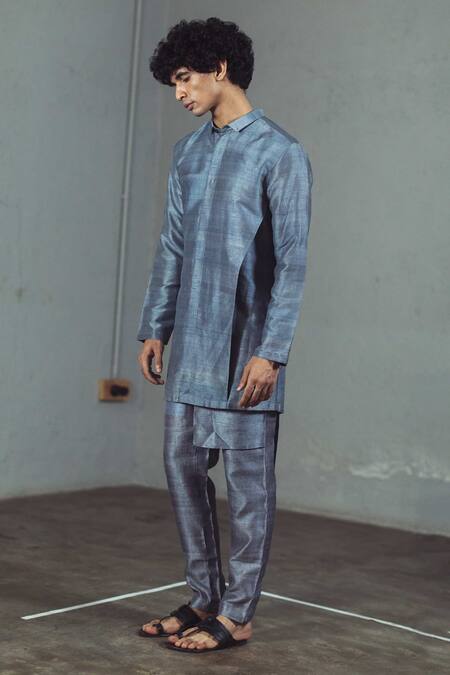 Grey Raw Silk Asymmetric Kurta
