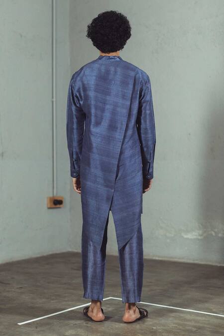 Grey asymmetric kurta with overlap, pintucks detail & floral placement embroidered motifs.