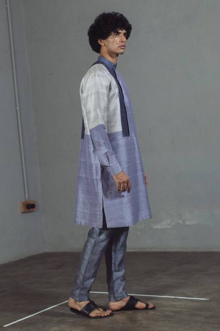 Grey Raw Silk Colorblock Kurta